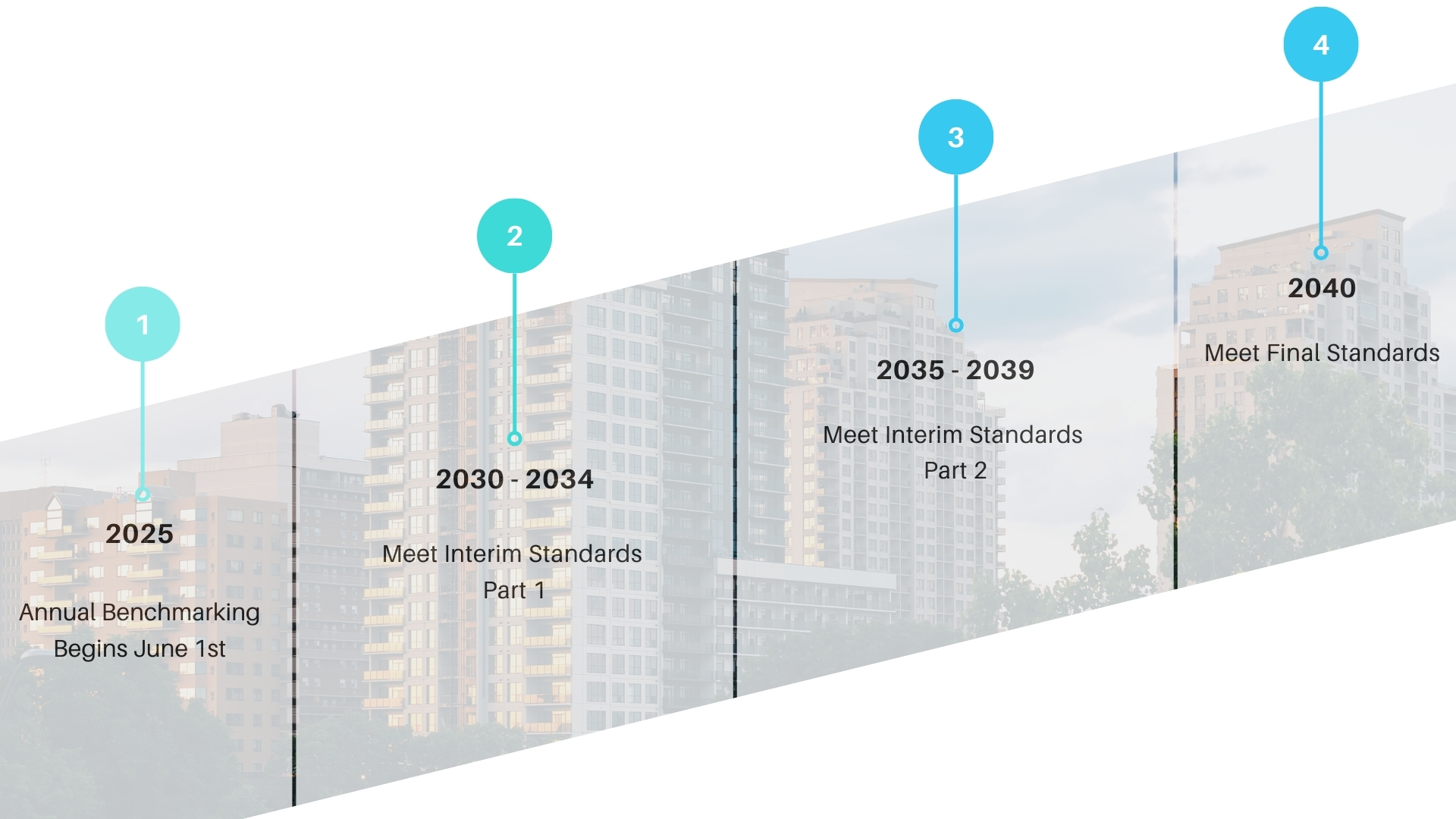 As of 2025, covered buildings (>35,000 sqft and not exempt) are required to report annual energy usage and associated greenhouse gas emissions into the ENERGY STAR Portfolio Manager. The deadline for 2025 reporting is September 1, 2025.